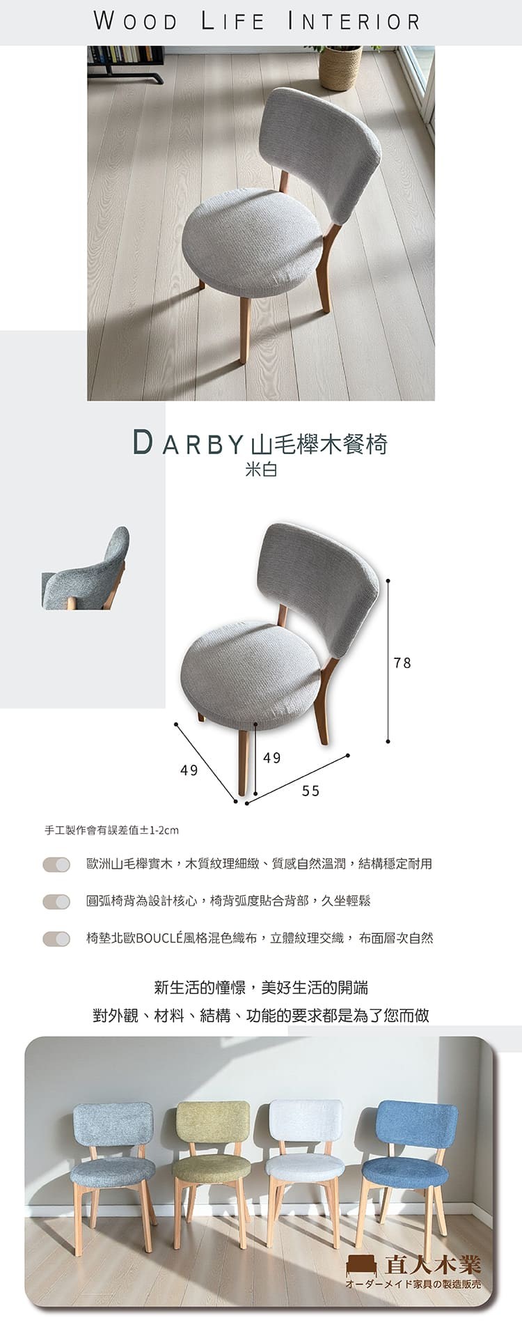 直人木業-DARBY山毛櫸木餐椅-米白