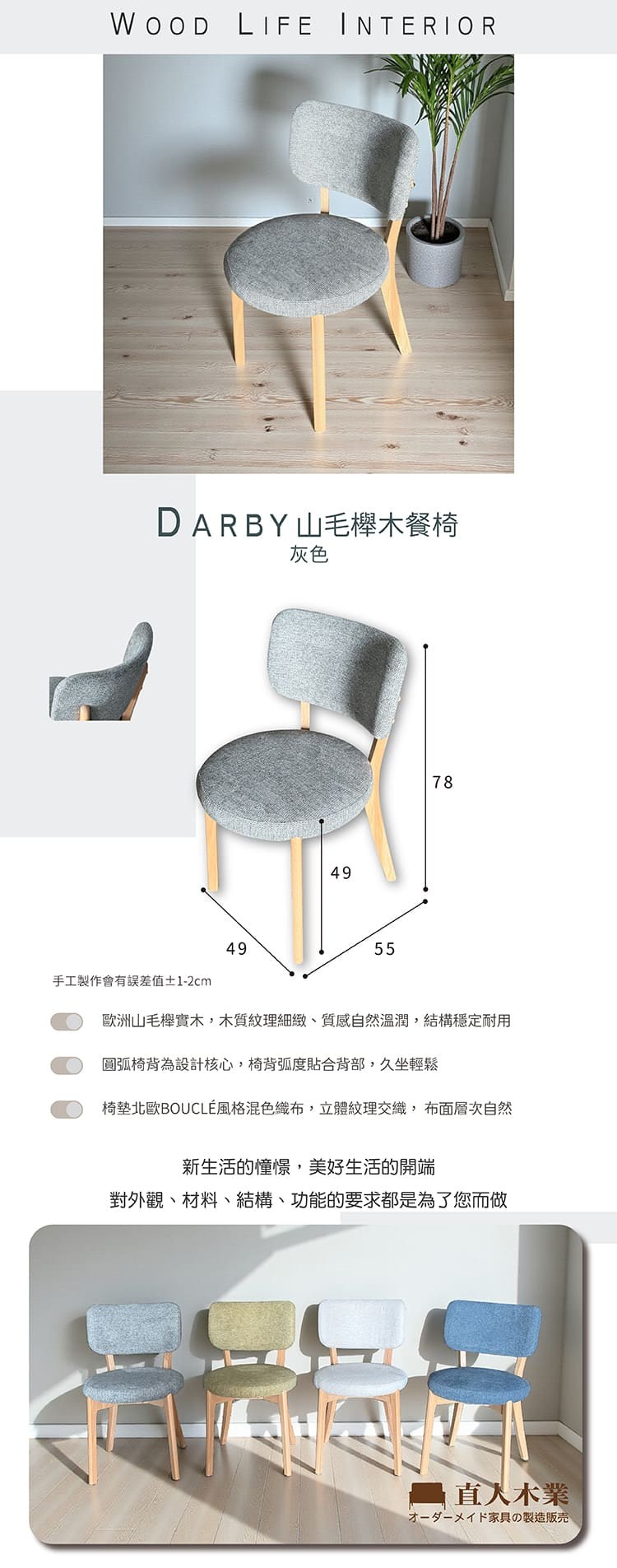 直人木業-DARBY山毛櫸木餐椅-米白