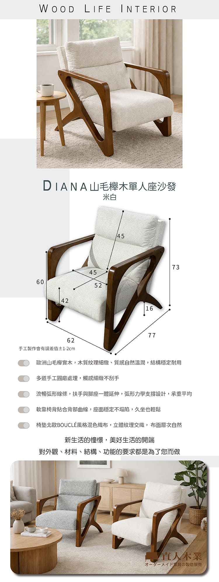 直人木業-DIANA山毛櫸木單人座沙發-米白