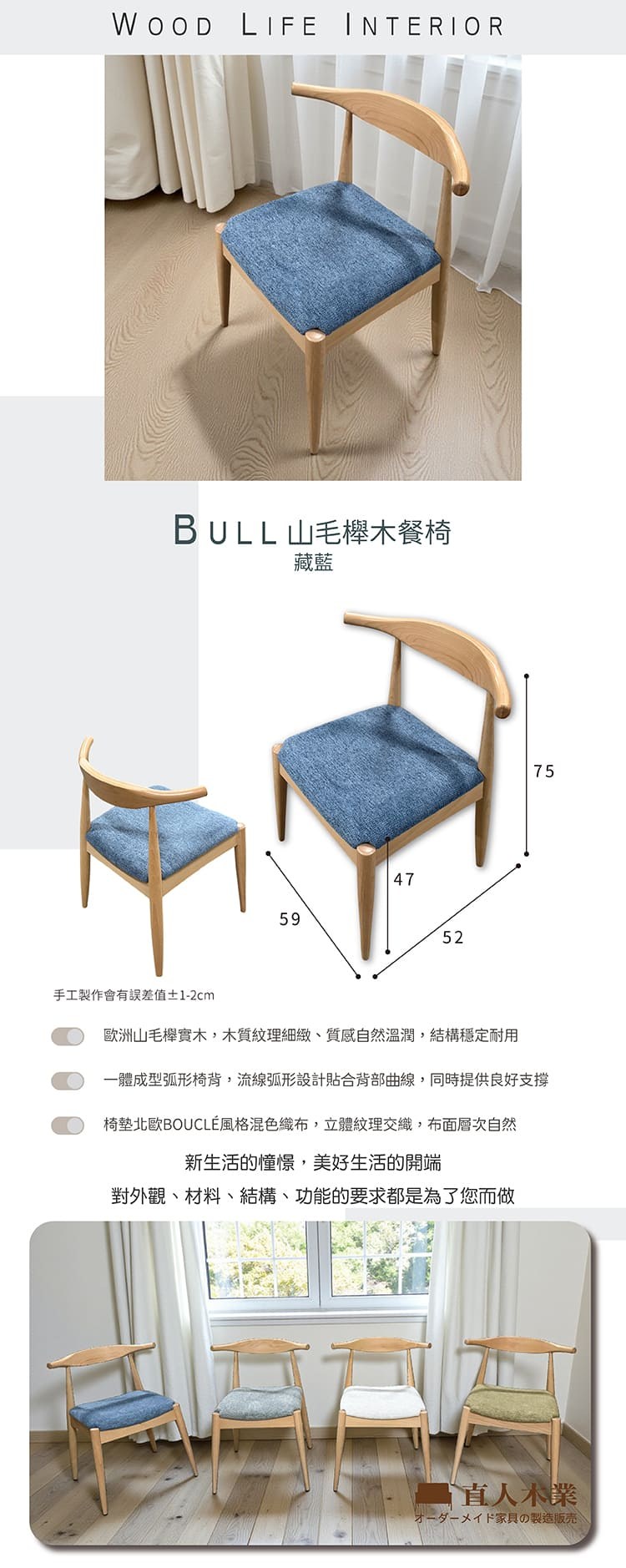 直人木業-BULL山毛櫸木餐椅-藏藍