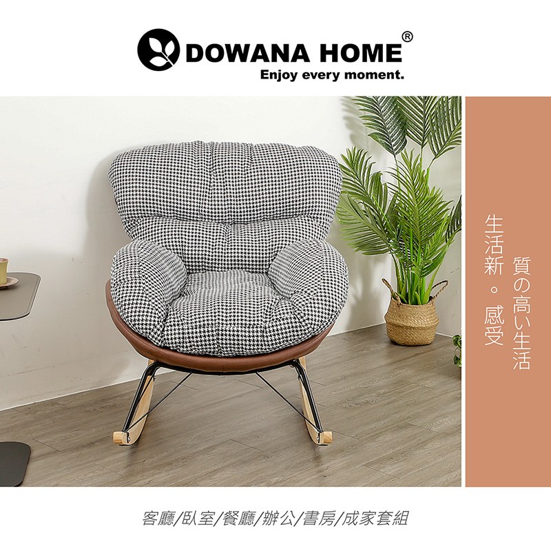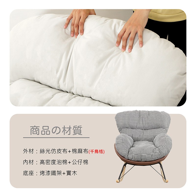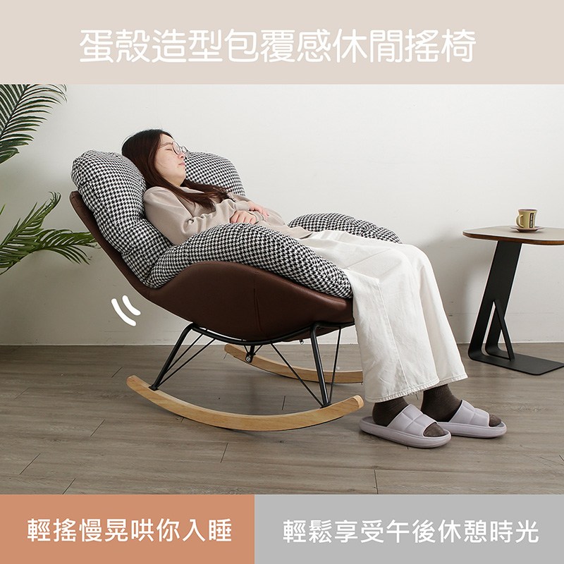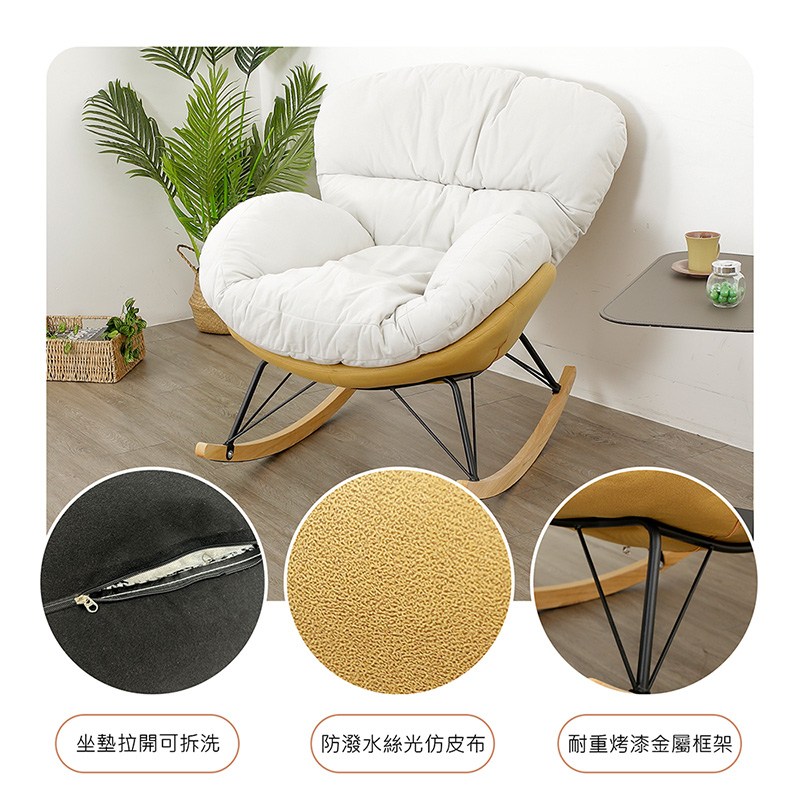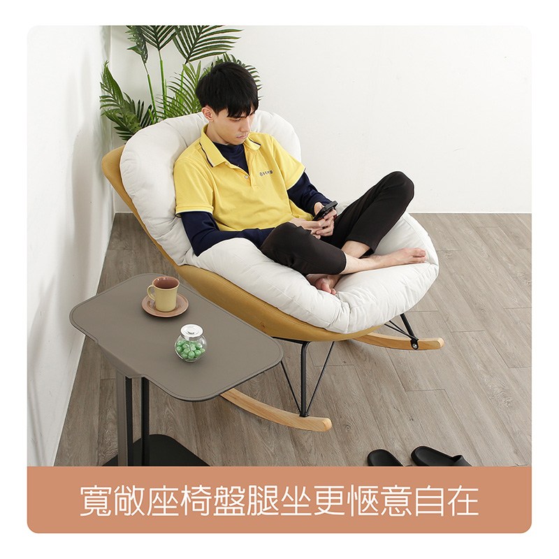 源氏木語蛋殼搖椅科技布單人沙發椅+腳凳 S0525 古銅黃 (H014362848)