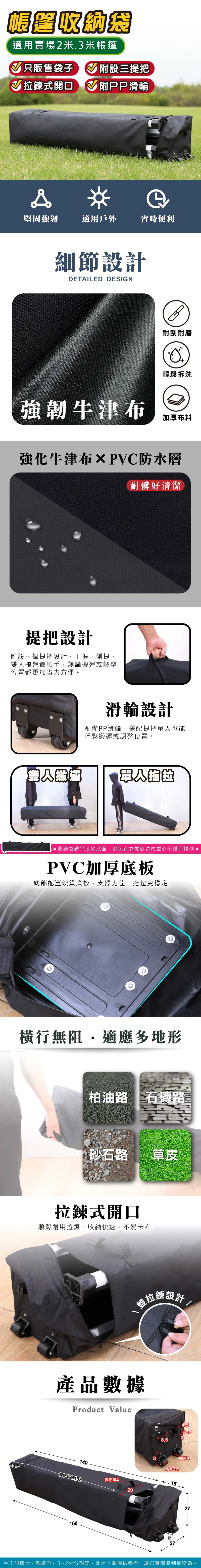 收納尺寸:27 x 27 x 160cm(適用賣場2 / 3米戶外帳篷)
