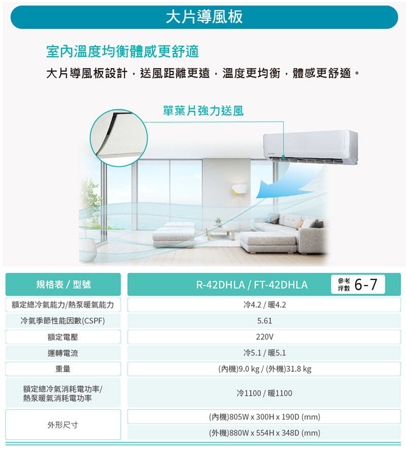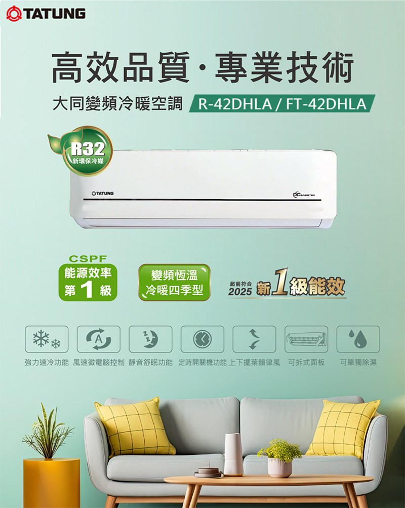 TATUNG大同 6-7坪一級能效變頻冷暖分離式冷氣 R-42DHLA+FT-42DHLA~含基本安裝+舊機回收