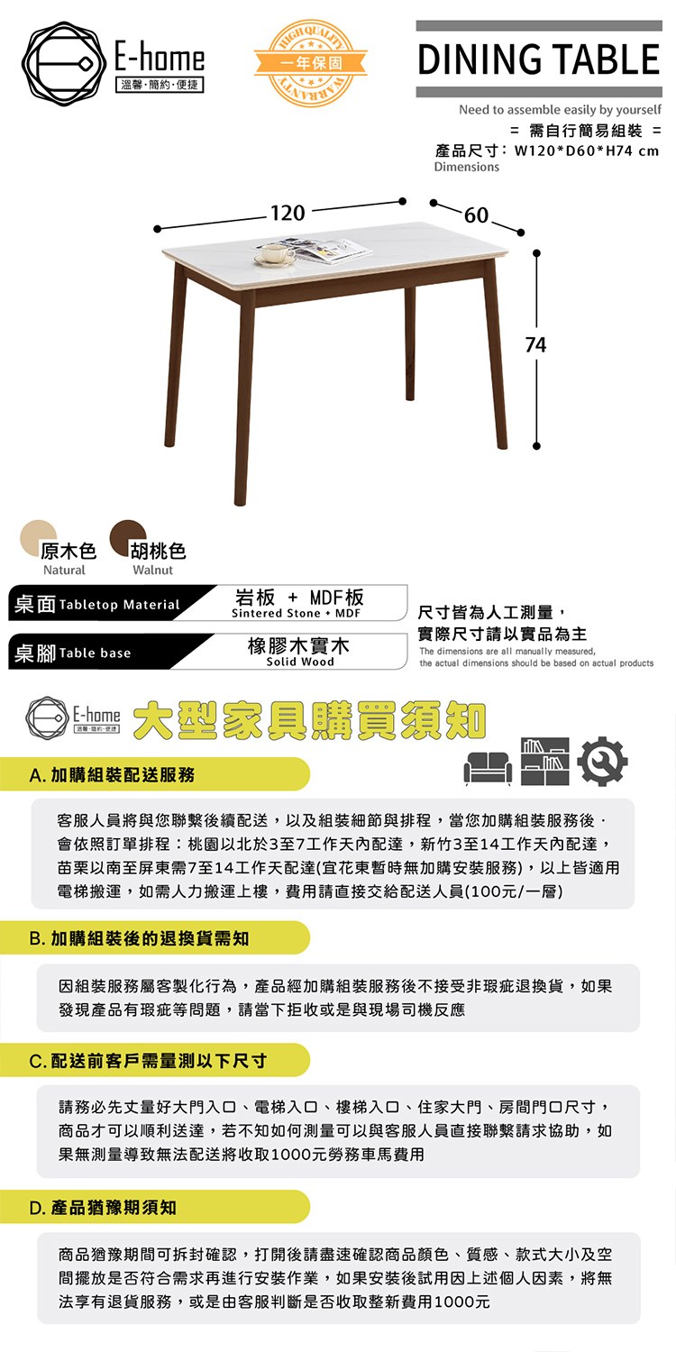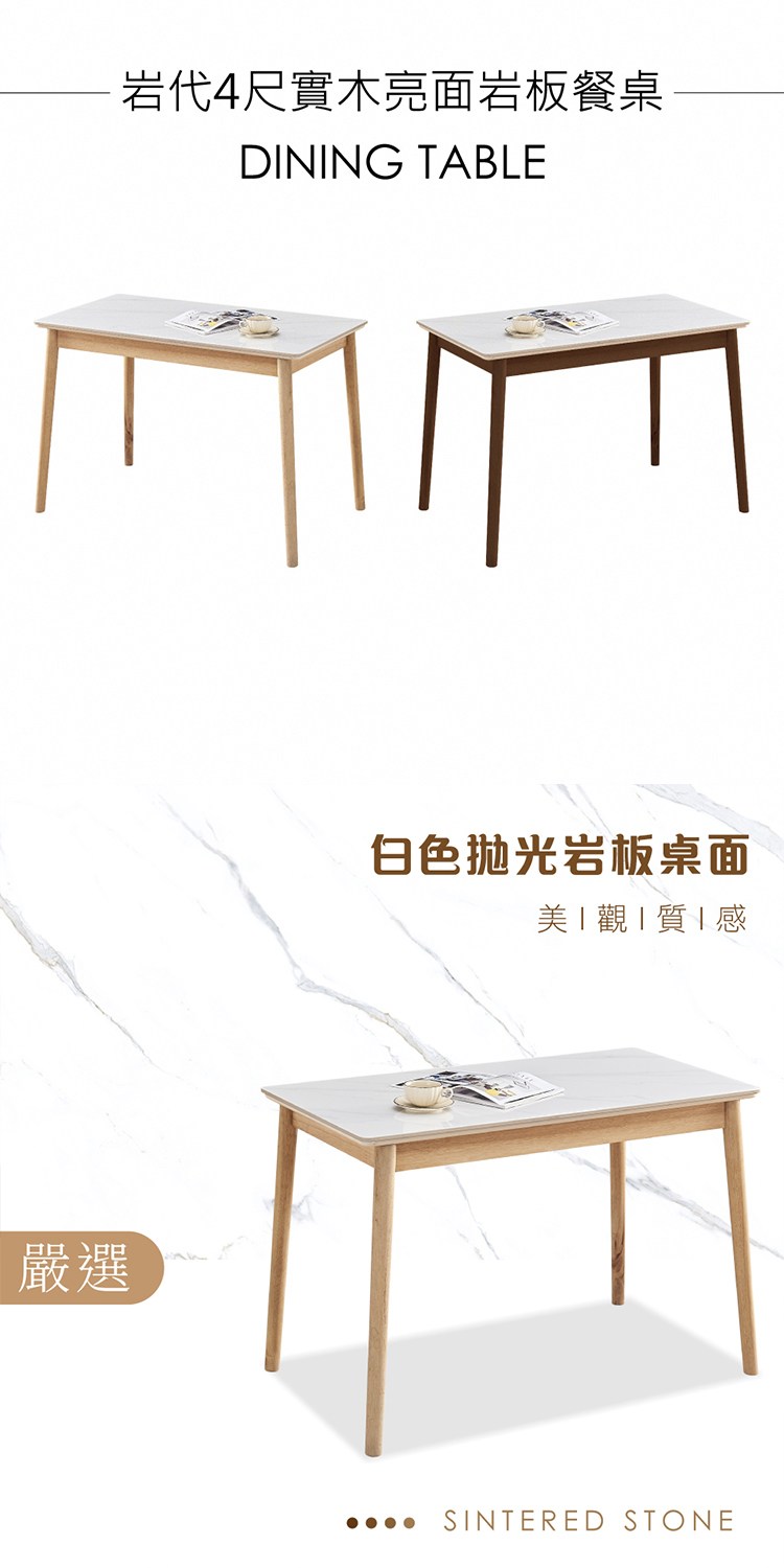 [E-home]岩代4尺實木亮面岩板餐桌,日式簡約概念讓您輕鬆擁抱時尚,擁有自在的生活品味。