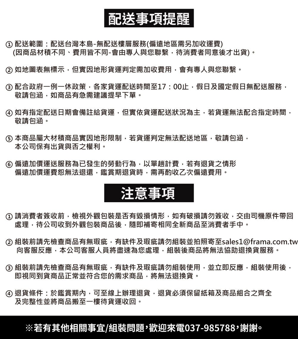 –配送範圍:配送台灣本島-無配送樓層(偏遠地區需另加收運費專人與您聯繫)。