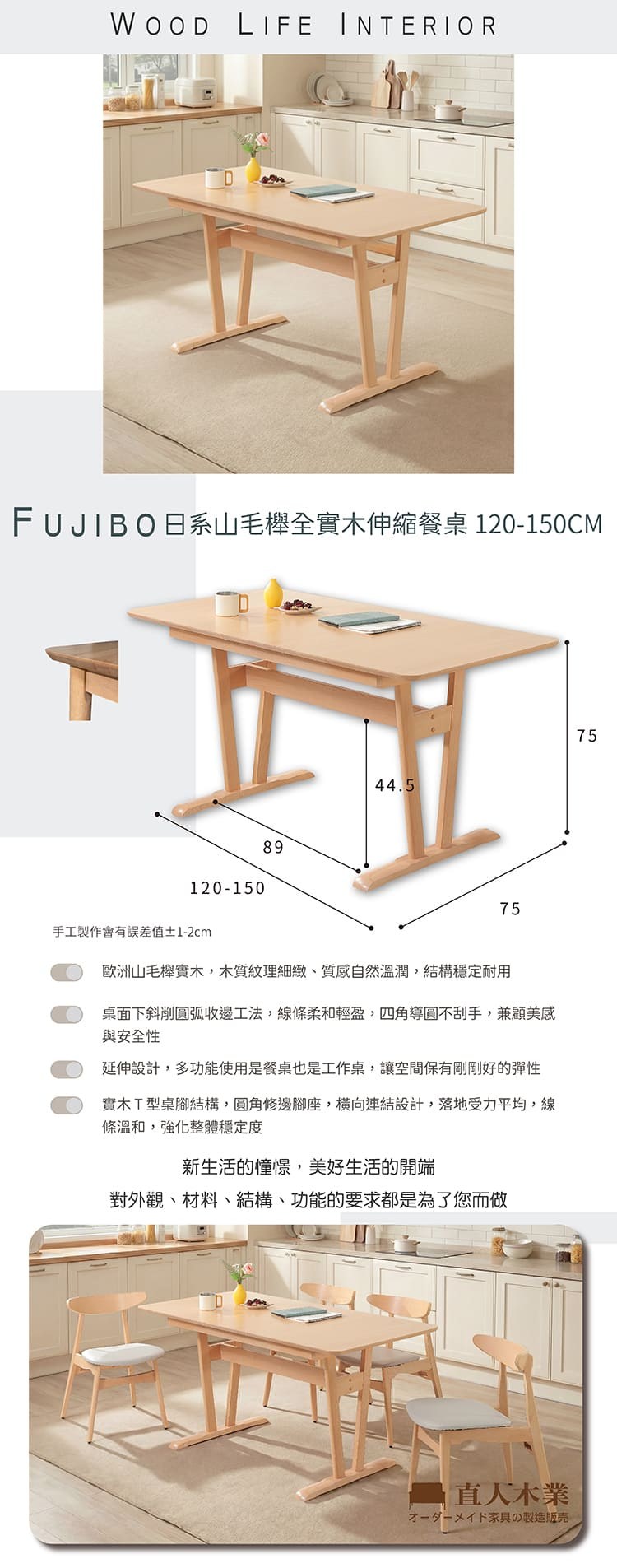 umami | 溪畔餐桌 Yy table - W 150 x D 80 x H 75 cm-原木色