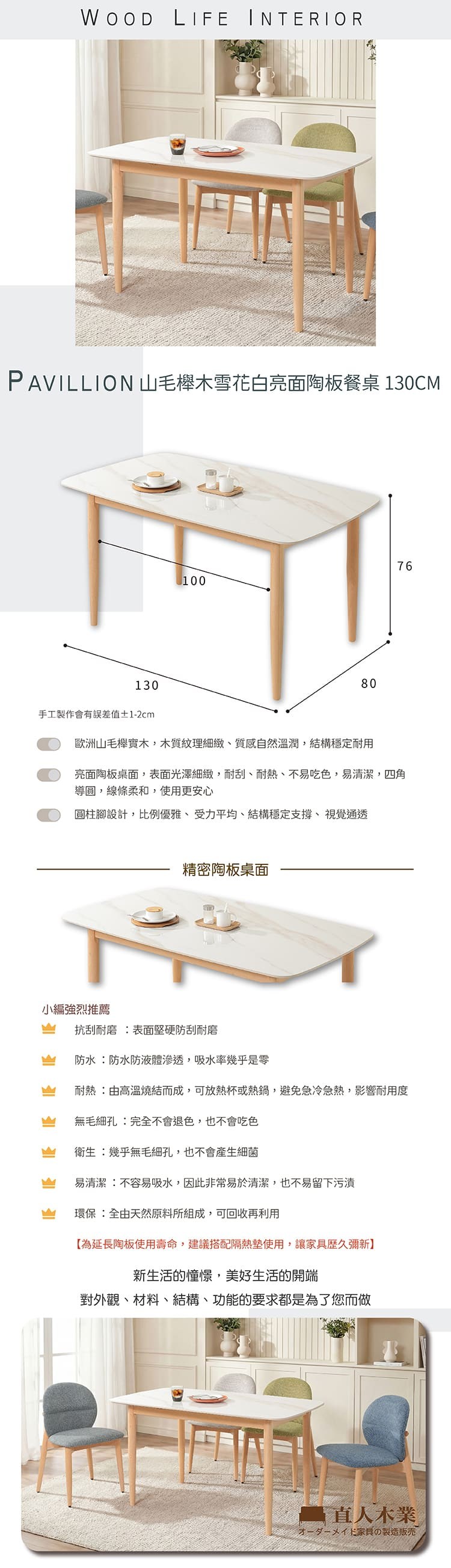 hoi! 源氏木語雲岩橡木原木色岩板餐桌1.4M Y54R09