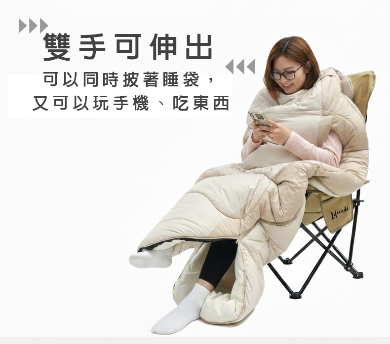 【LIFECODE】蛋餅型可伸手保暖睡袋/可水洗
