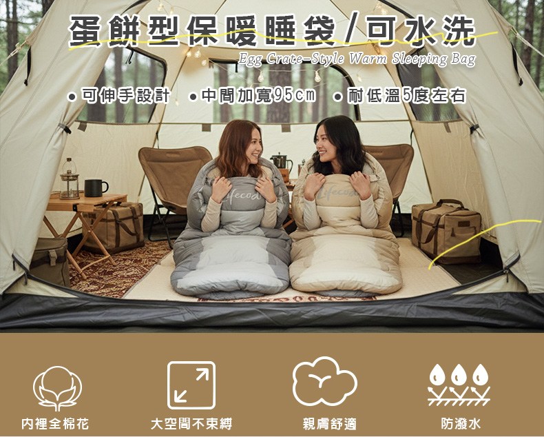 戶外夜涼也不怕,溫暖包覆睡到自然醒。