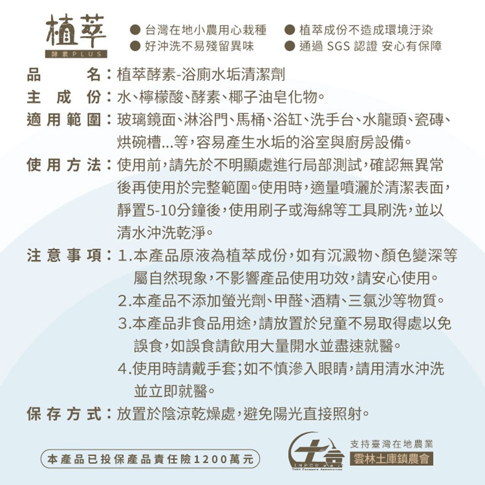 植萃酵素-浴廁水垢清潔劑500ml 浴室水垢500ml