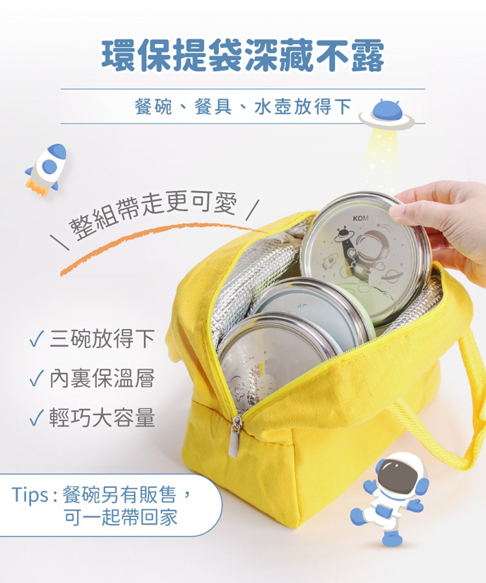 KOM 保溫餐袋 22.5 x 12.5 x 18.5cm 太空人 黃色 1個