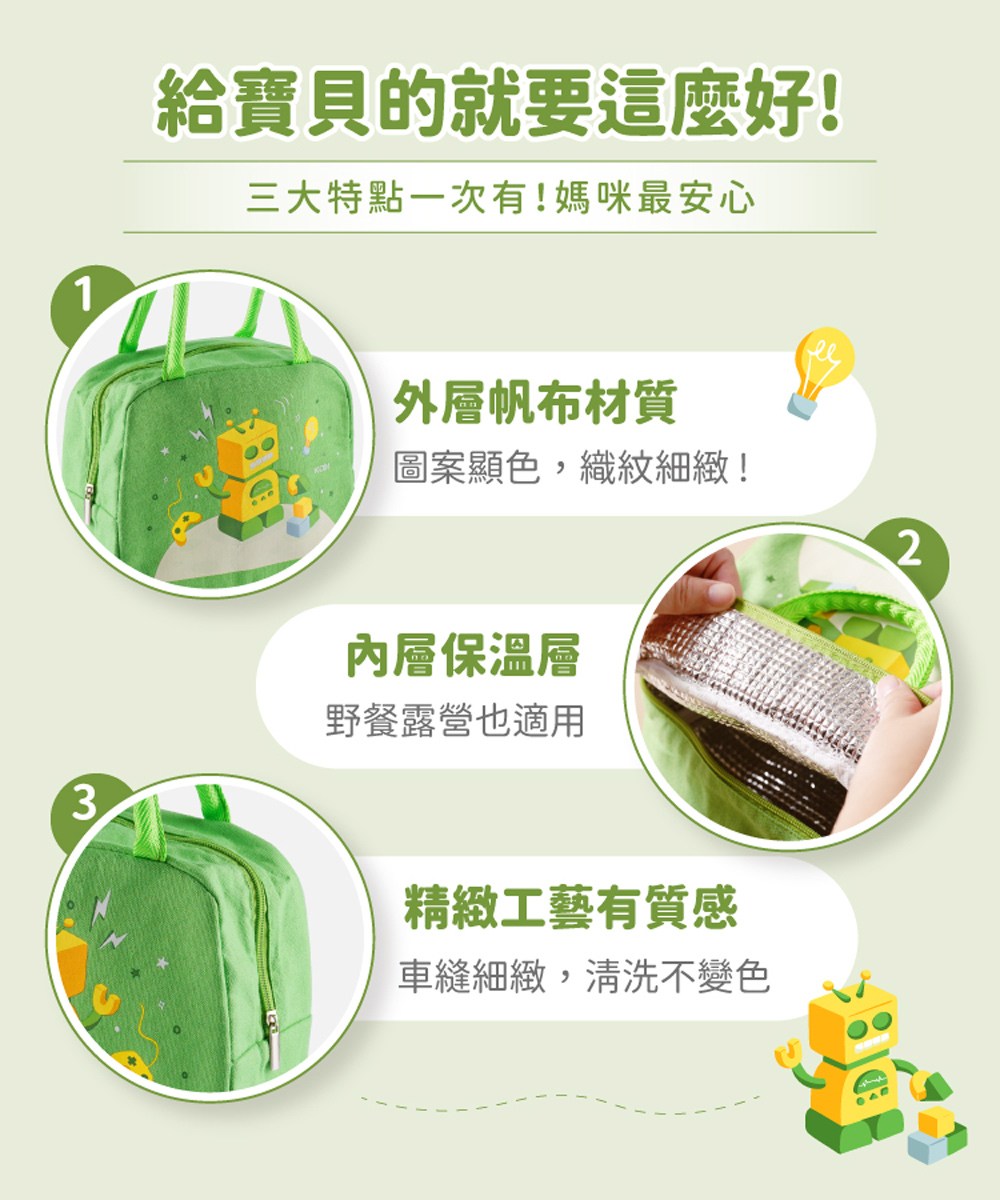 【KOM】防水牛津布保溫便當袋/餐袋 多款任選夢想系列-機器人