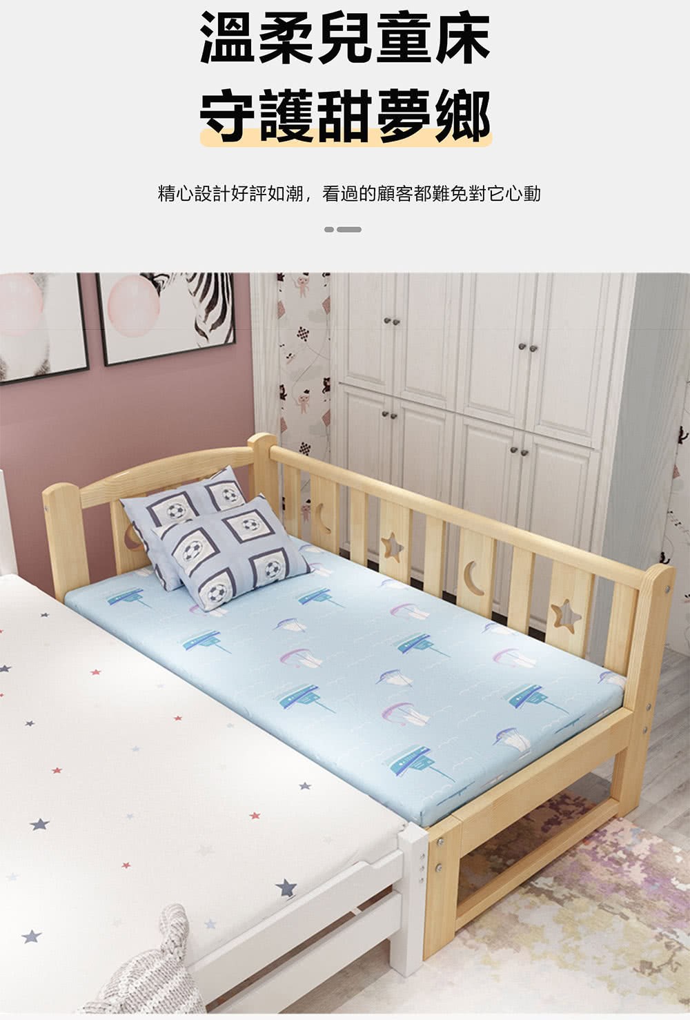 【HABABY 環安家居】無毒家具製造商 松木實木拼接床 單人加大 長196寬112高40 三面有梯款(延伸床、床邊床、嬰兒床、兒童床)三面有梯款-長196x寬112x高40