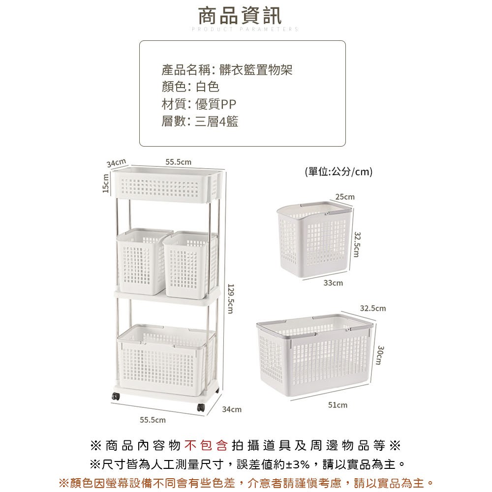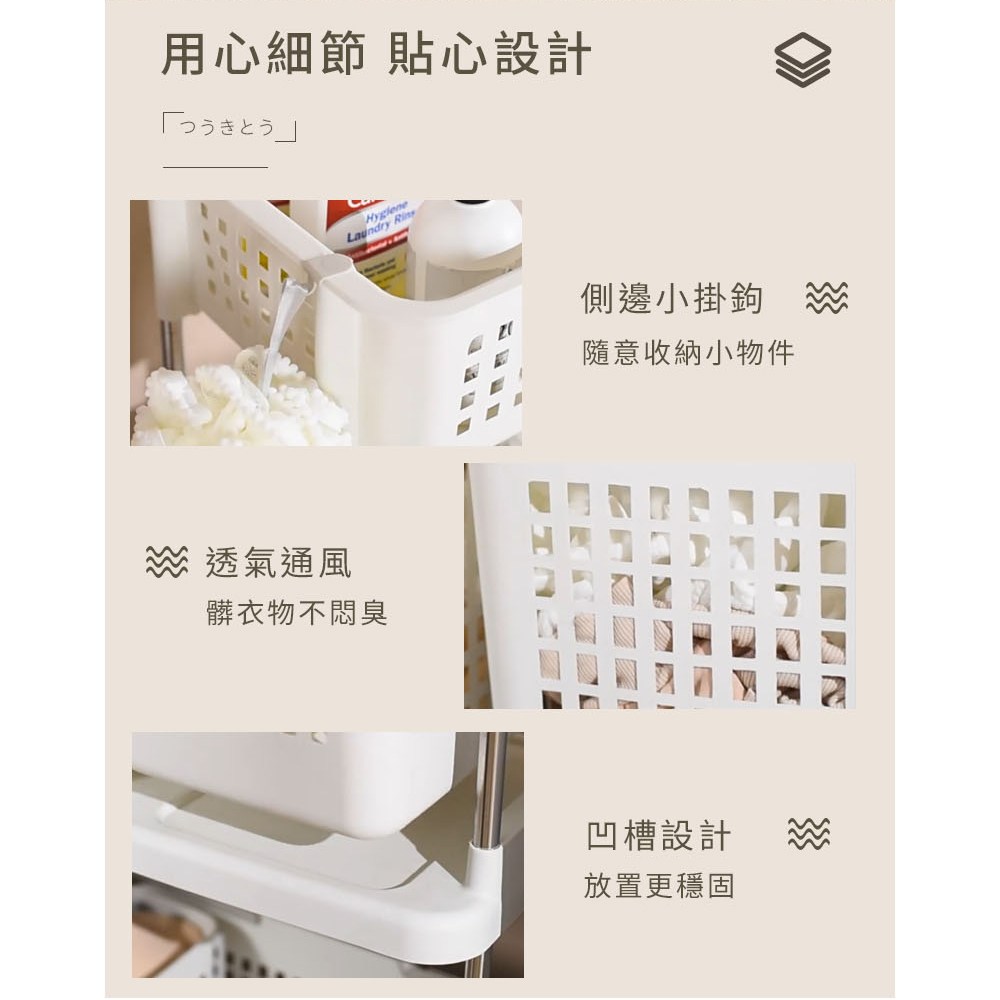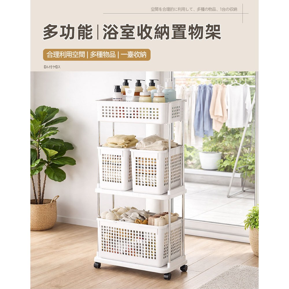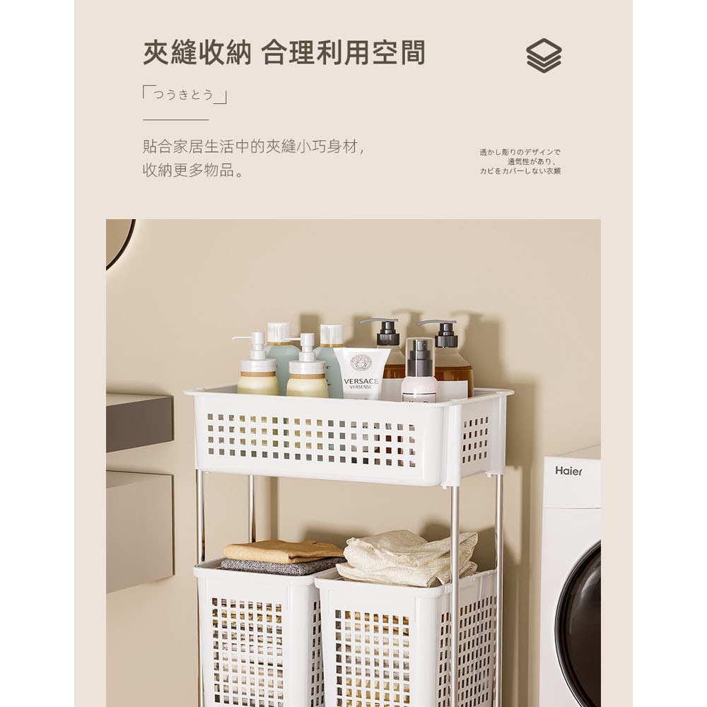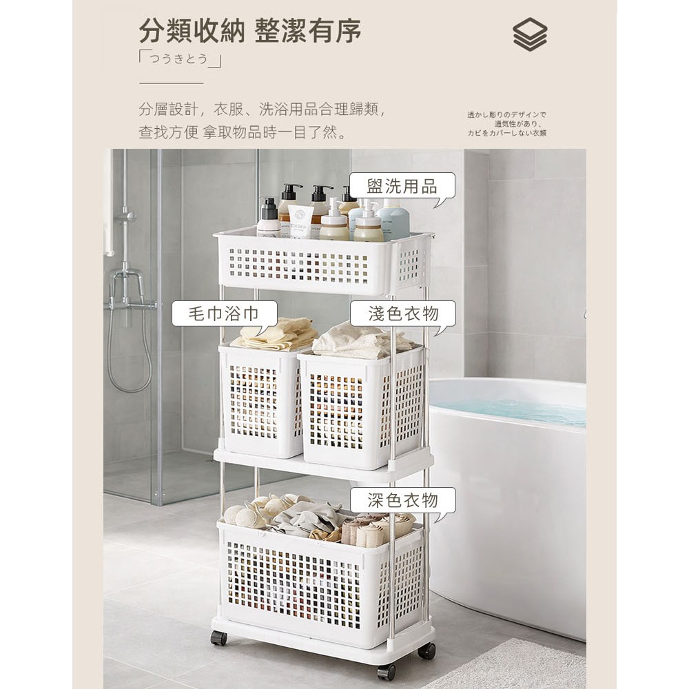 AOTTO 多功能三層附輪置物收納架白色