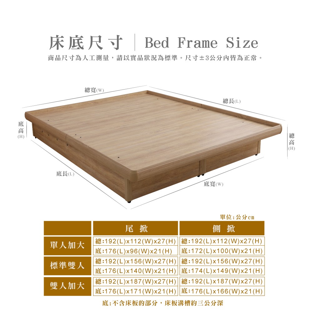 傢俱工場-強森 全實木粗腳穩固 床架/床底 單人3尺原木色