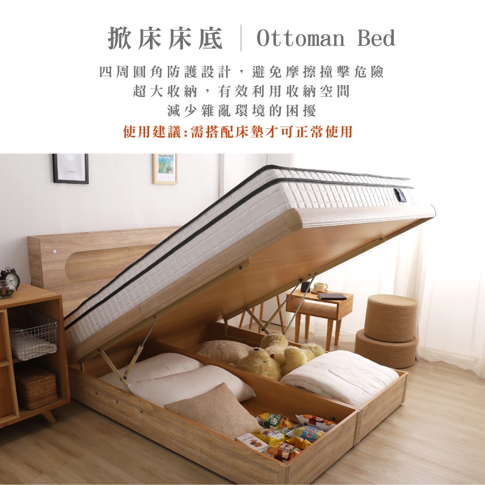 直人木業-NORTH北美楓木六尺雙人加大安全掀床(不含床頭)