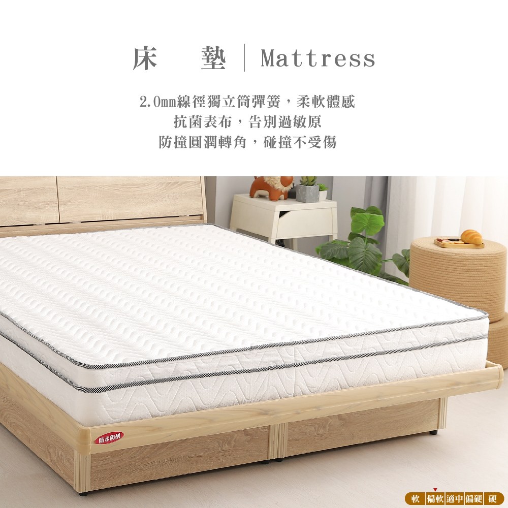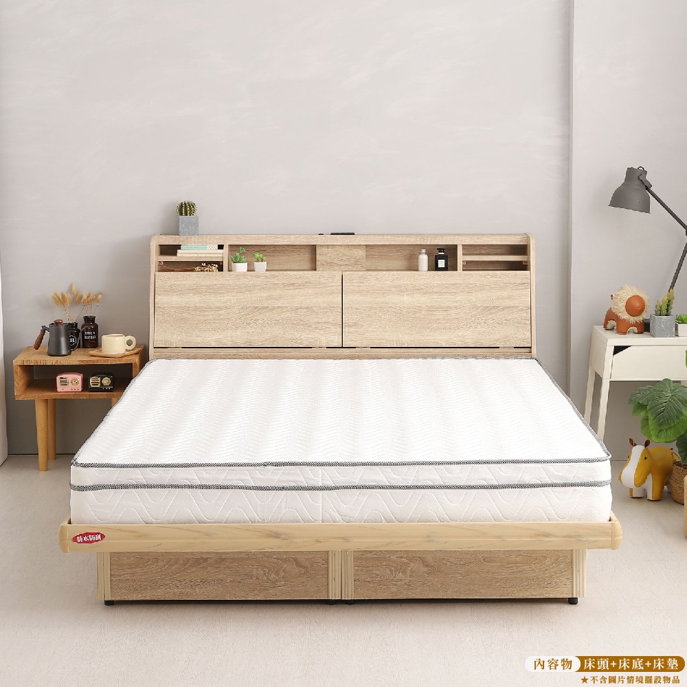 傢俱工場-吉米 MIT木心板床組 (插座床箱+床底+獨立筒墊) - 雙大6尺梧桐