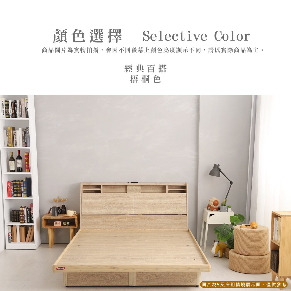 傢俱工場-吉米 MIT木心板床組 (插座床箱+床底+獨立筒墊) - 雙人5尺梧桐