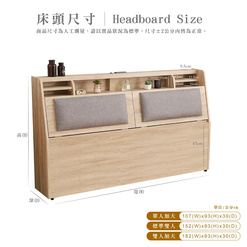 【顛覆設計】瑞絲收納格插座靠枕床頭片(單大3.5尺)