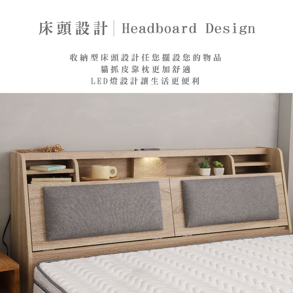 【KIKY】延禧貓抓皮附插座靠枕床組 雙人加大6尺(床頭片+六分床底)