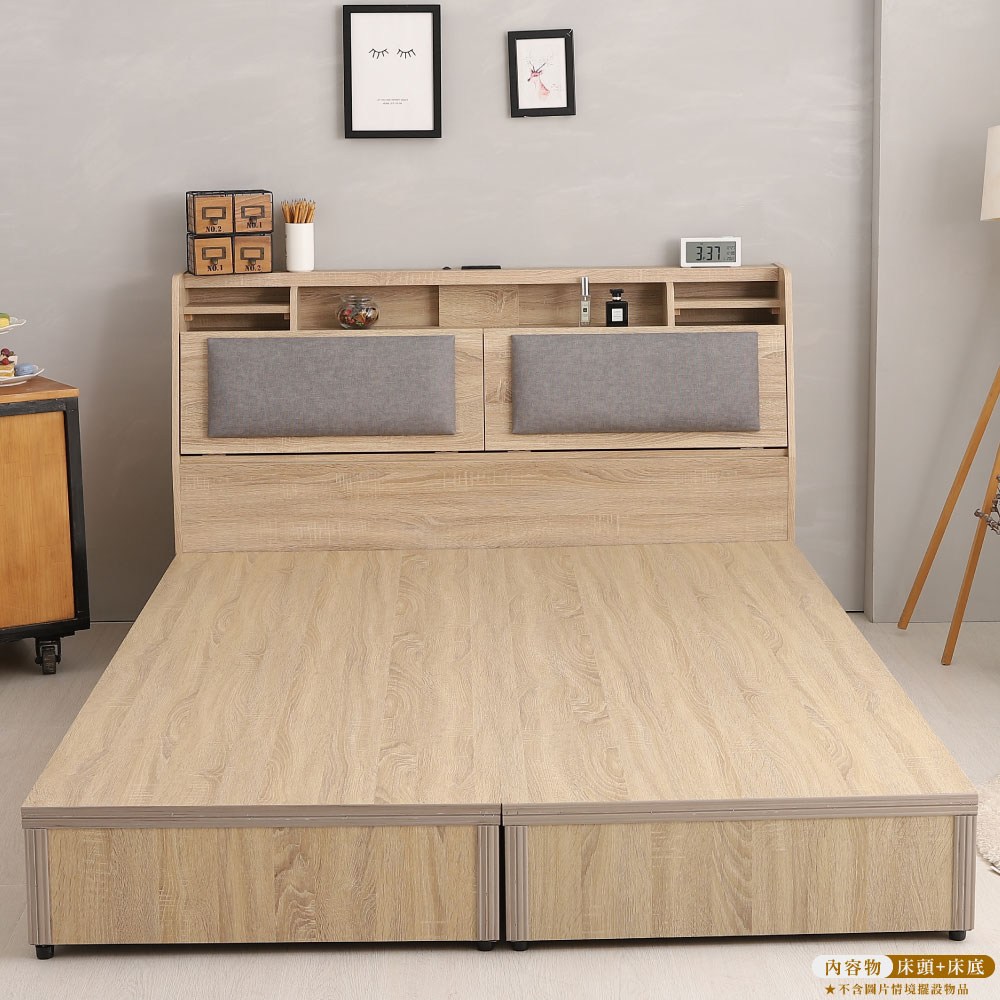 傢俱工場-吉米 MIT木心板床組 (插座床箱+床底) - 雙大6尺古橡