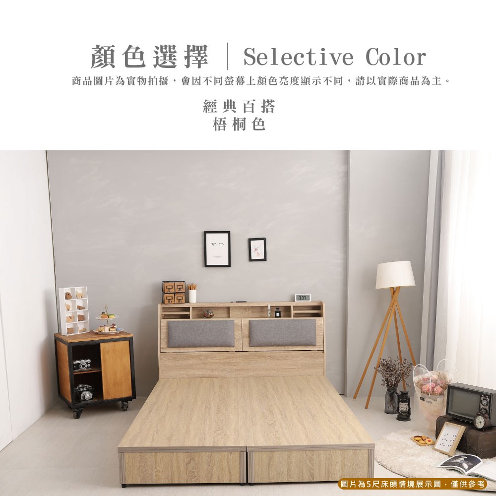 傢俱工場-吉米 MIT木心板床組 (插座床箱+床底) - 雙人5尺梧桐