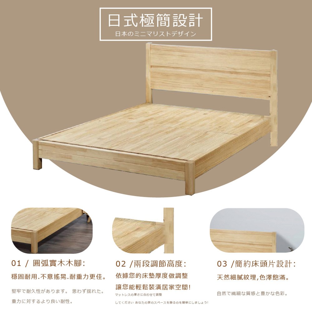 傢俱工場-強森 全實木粗腳穩固 床架/床底 雙人5尺原木色