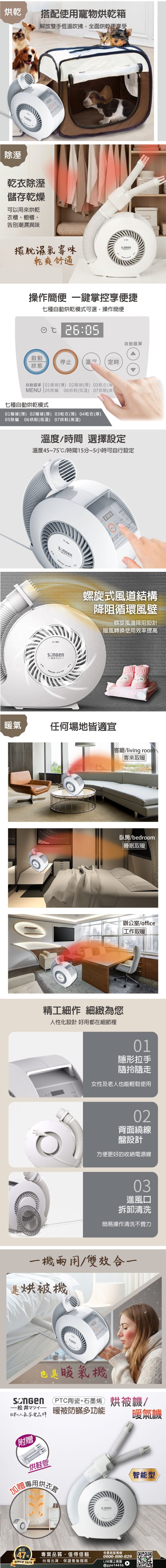 【SONGEN松井】智慧溫控型多功能烘被機/暖氣機