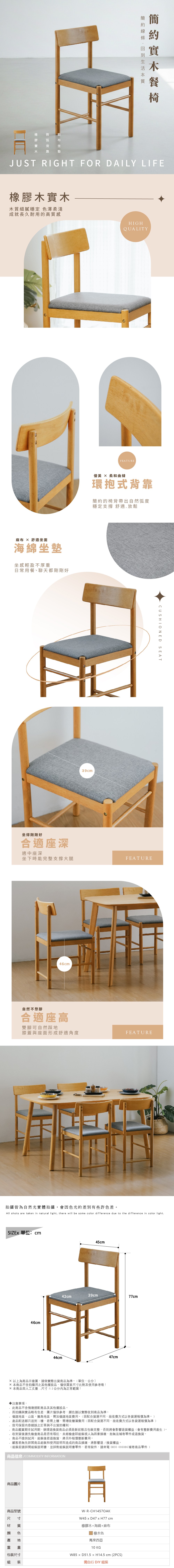 【H&D東稻家居】諾艾莉北歐系列餐椅-原木色/單椅