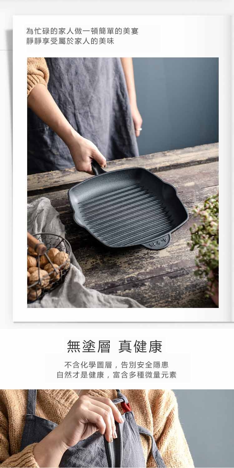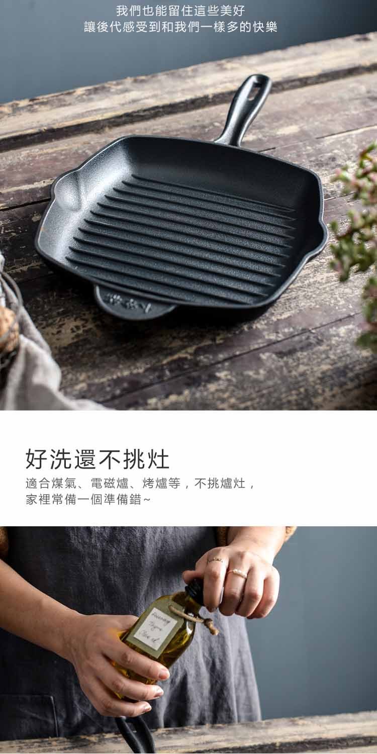 出口琺瑯牛排煎鍋26CM鑄鐵條紋牛排鍋方形無涂層琺瑯平底鍋烤盤