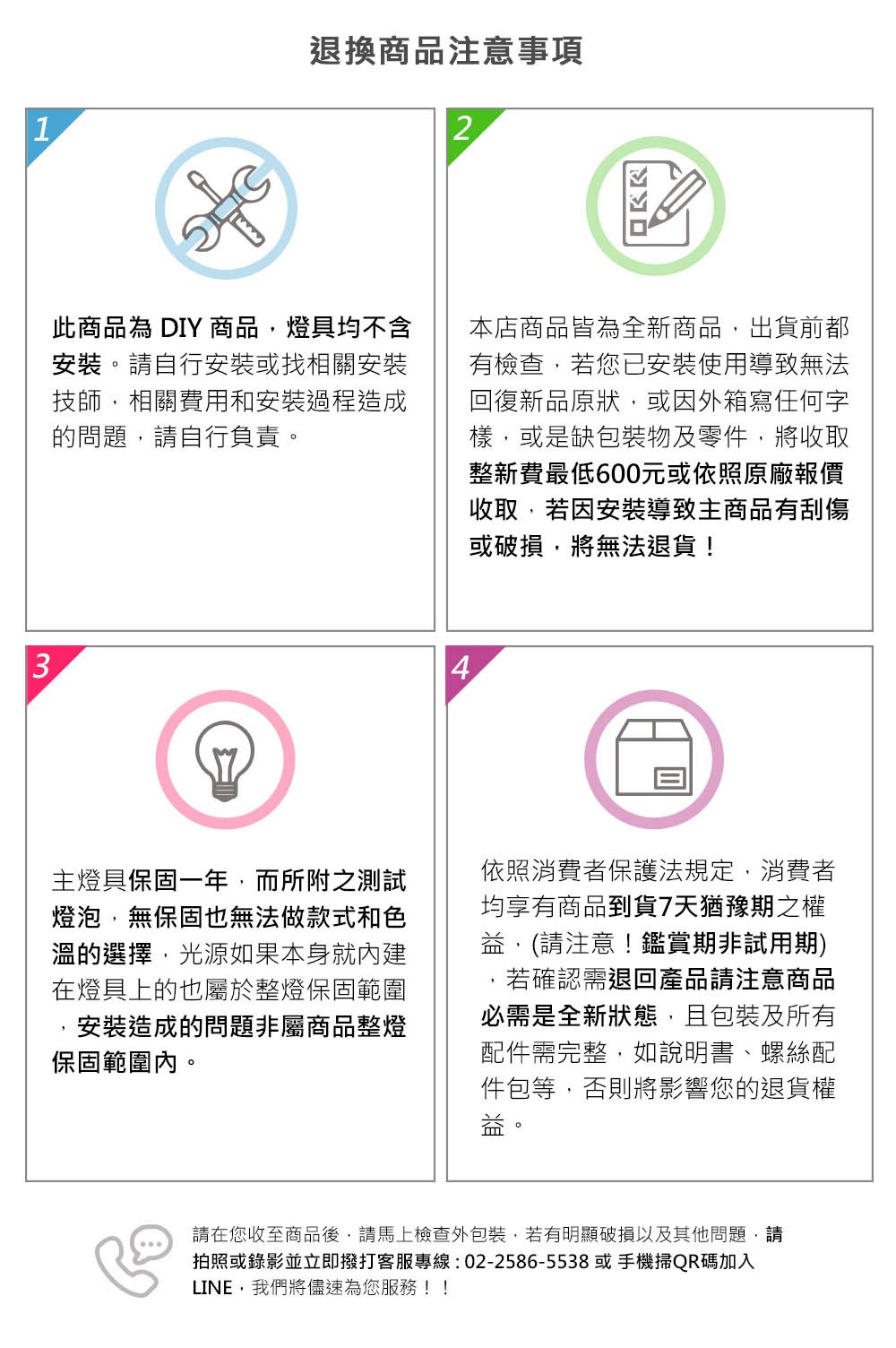 ※若產品本身瑕疵或運送過程導致新品瑕疵,到貨7日內可更換新品。