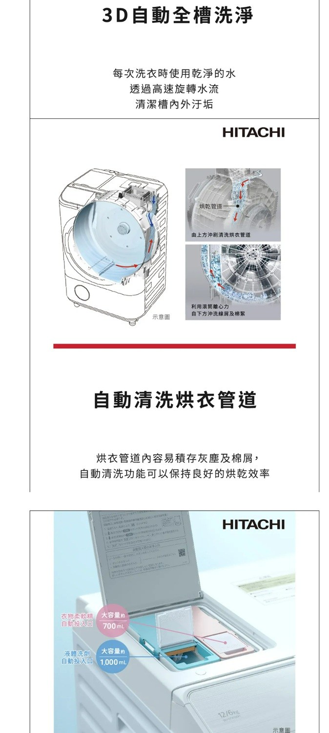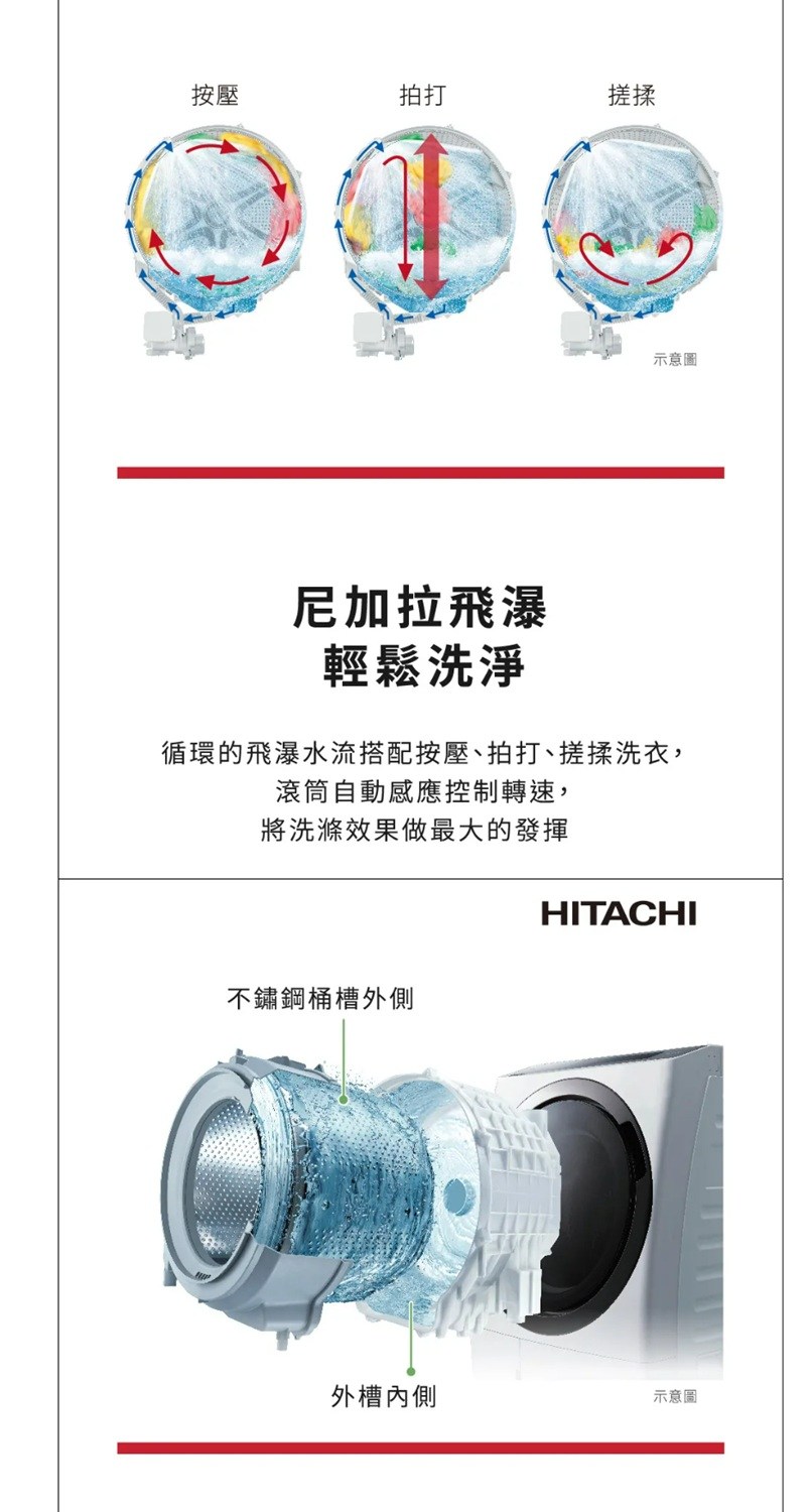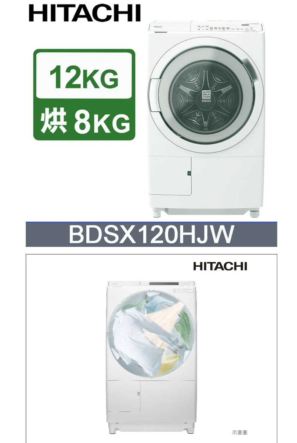 登錄送+加碼送【HITACHI日立】12KG變頻右開滾筒洗脫烘洗衣機BD-SX120HJR-W