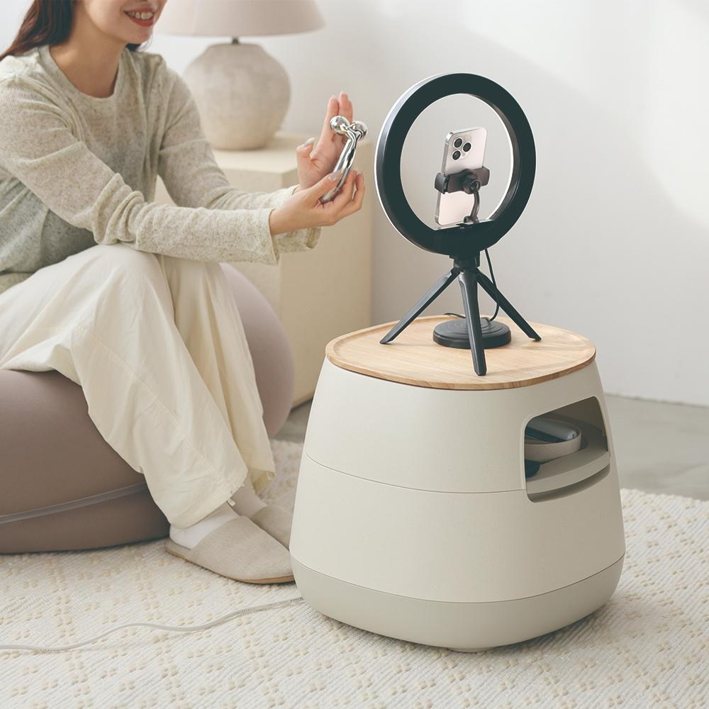 【班尼斯】台灣獨家.恐龍蛋收納升降茶几-胡桃色