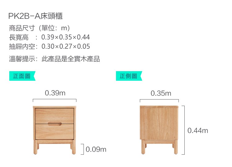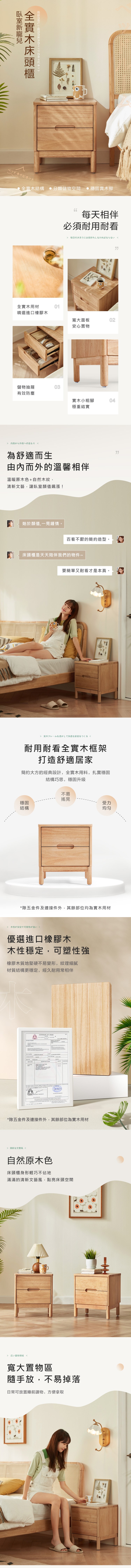 林氏木業北歐實木二抽儲物床頭櫃 PK2B 原木色
