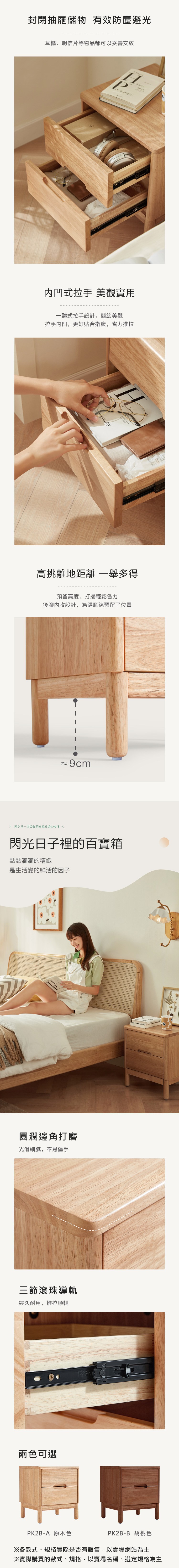 *注意:以下為情境示意圖,實際商品款式為北歐實木二抽儲物床頭櫃 PK2B 原木色