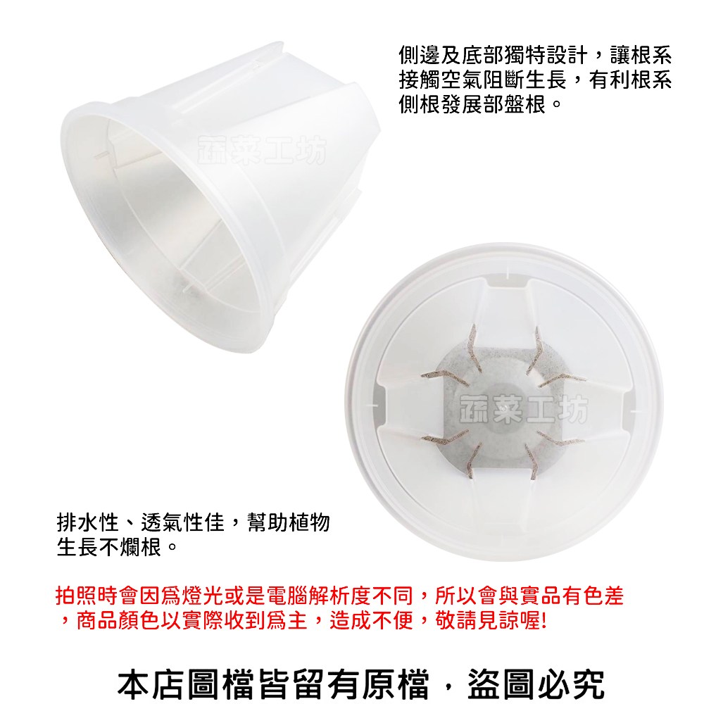 ※側邊及底部獨特設計,讓根系接觸空氣阻斷生長,有利根系側根發展不盤根。