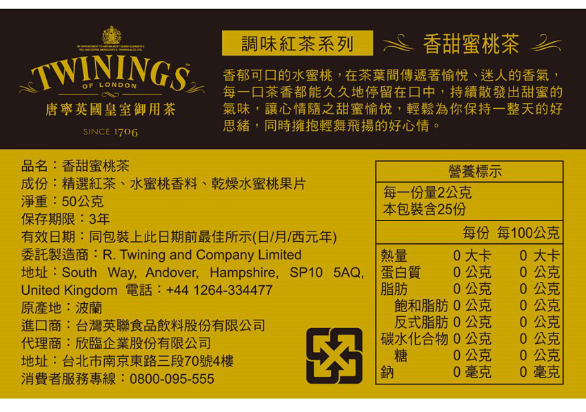 Twinings 唐寧香甜蜜桃茶(2gx25入)