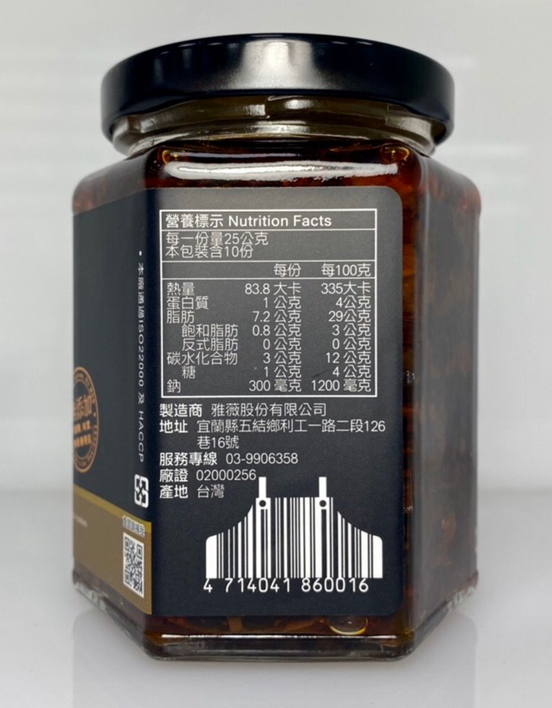 毓秀私房醬 蔥蒜醬 黃金葱油爆香 宜蘭三星蔥 無添加防腐劑 250g 1罐