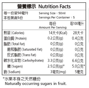 原汁100%,非濃縮還原,製作過程不加水。