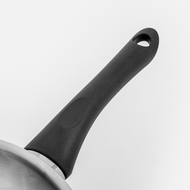 人性化的精巧機能,加長防焰圈與特製手柄角度,火焰較不易燒到手柄,搭配貼合大拇指的凹槽設計,單手好握又省力,使用更安心舒適。鍋身與手柄採用無鉚釘接合工藝,一體成形平滑好清洗,不易藏汙納垢更衛生,清潔後可直接吊掛晾乾,不佔空間好收納。