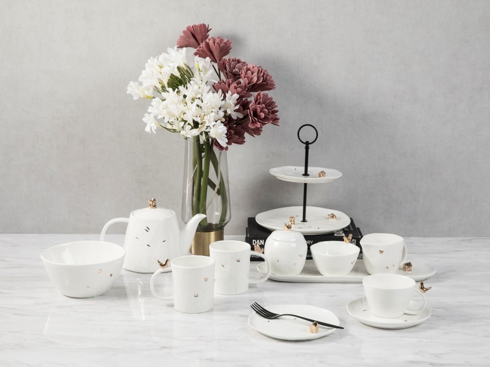 在純白的餐具上點綴一鏤金葉又或是立體森林動物,彷彿你就置身在無憂的森林中,與這群動物追逐嬉戲!此時的幸福滿足感是筆墨難以形容!