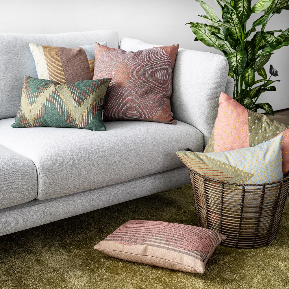孟菲斯系列繡印花抱枕45X45-粉綠