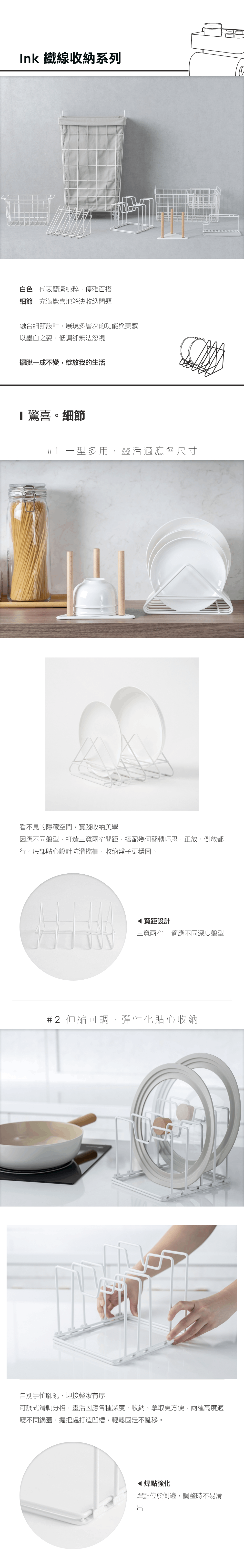HOLA 和樂家居 Ink 鐵線收納可調式碗架 360g 1層 白色 1個