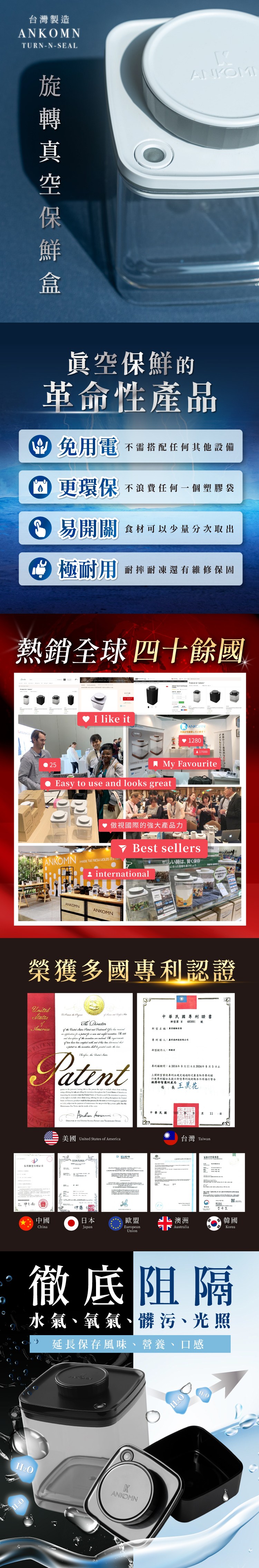 ANKOMN擁有旋轉即真空的專利技術,將會是您使用過所有真空保鮮盒中的全新體驗!轉動瓶蓋上的旋鈕即能抽真空,適合冰箱收納鮮食蔬菜、寵物各類零食、乾香料收納、咖啡豆茶葉收納,保存風味更持久。