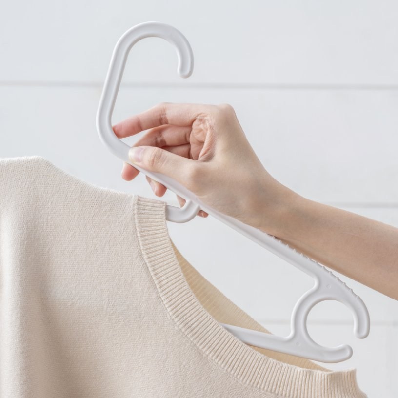 人性化的精巧機能設計,為避免衣物肩部、領口變形而特製。衣架齒狀表面不傷衣物,更能防止風吹滑落。內凹掛勾,可貼和指腹曲線,久提不留勒痕。滿足多元吊掛場景,使衣櫃整潔有序。