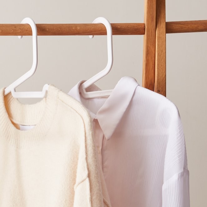 領口下方的凹槽曲線,可輕易滑進窄領衣物,防止領口拉扯變形。選擇合適的衣架,日常簡單保養衣物,讓珍惜的服飾更加耐穿。