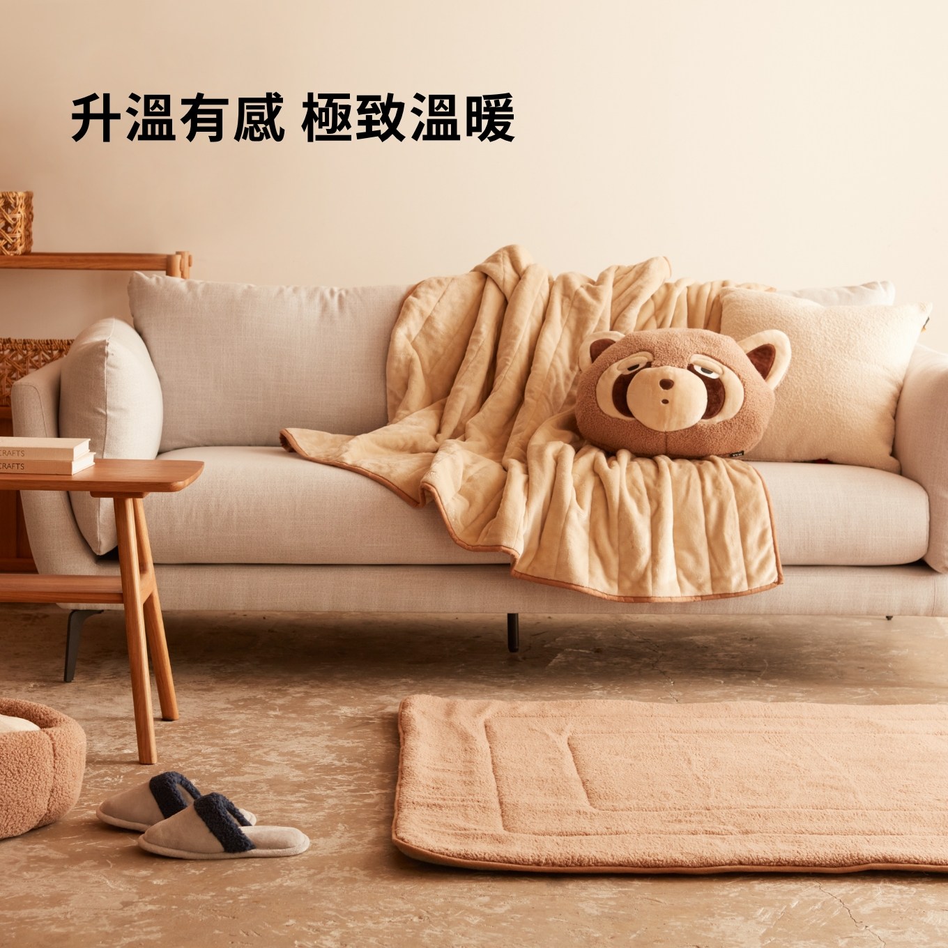 快速蓄熱的石墨烯暖棉填充,鎖住溫暖,給予冬季冰冷的手最貼心的呵護。透過異材質拼接與繡花工藝,以細緻法蘭絨搭配療癒毛絨,呈現出冬日早晨睡眼惺忪的紅浣熊和哈士奇。在客廳、臥室或辦公室皆能提供滿滿暖意,陪你度過有感升溫的柔和冬日。