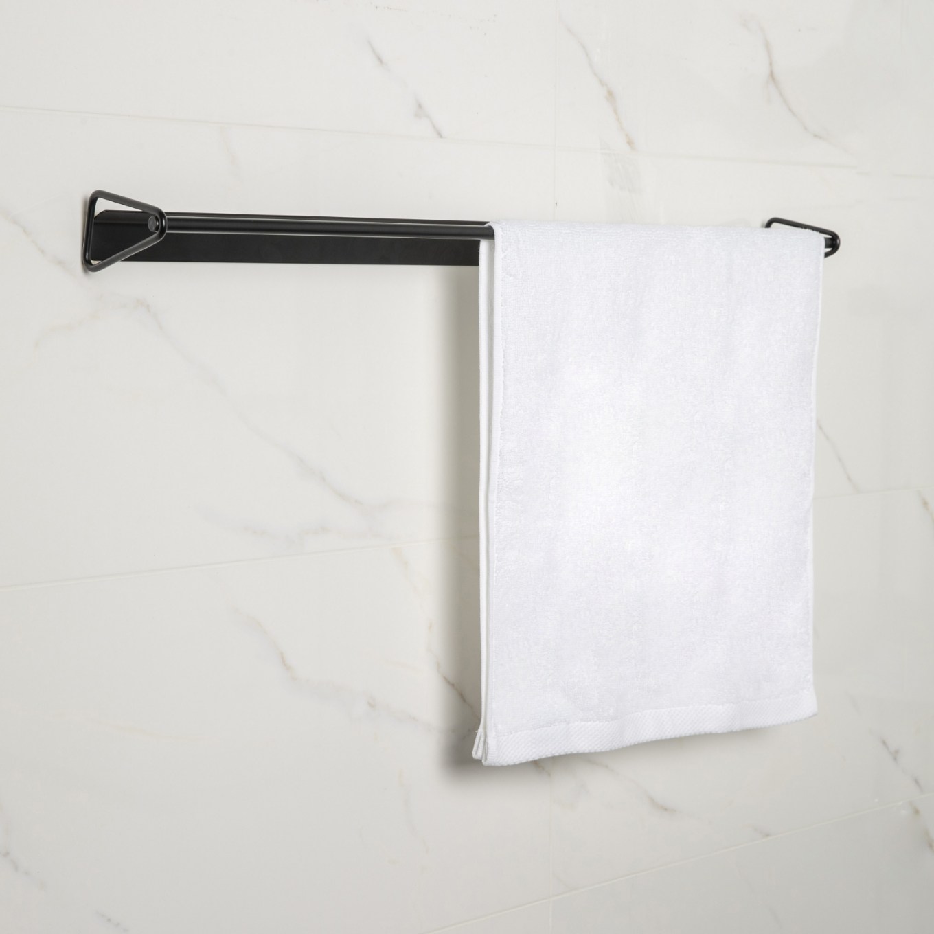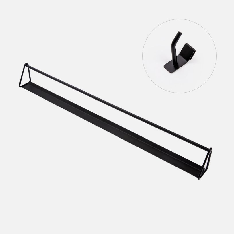俐落沉穩的墨黑,完美貼合在牆面上,透過簡約線條勾勒美型有序,形塑出屬於家的風格調性。廚房、衛浴空間皆適用,可吊掛浴巾、毛巾、抹布等,承重 5 kg。