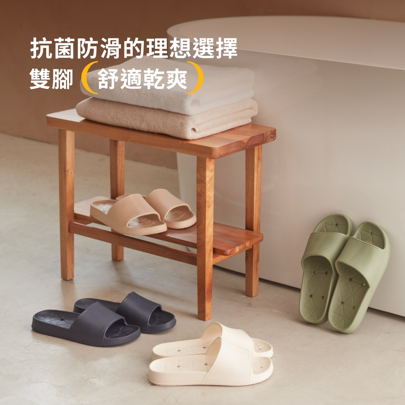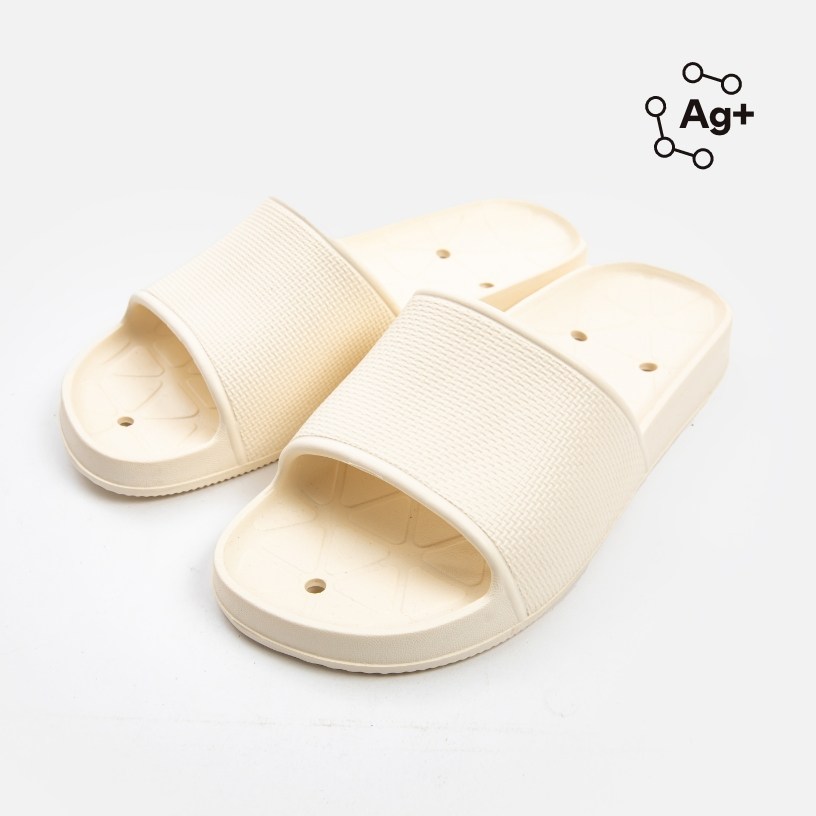EVA材質一體成型,重量輕盈,防水防滑,觸感柔軟,能有效釋壓,溫柔減緩足部壓力。鞋底設有孔洞設計,便於排水,保持乾爽舒適。同時,經銀離子抗菌處理,不易發臭。100%可水洗,清潔便利,輕鬆踩踏,舒適自在。