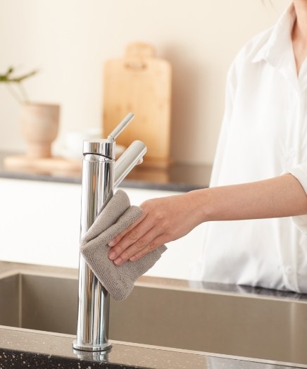 廚房流理臺、水龍頭經常沾附湯水油漬,洗碗後清潔,輕鬆乾淨。